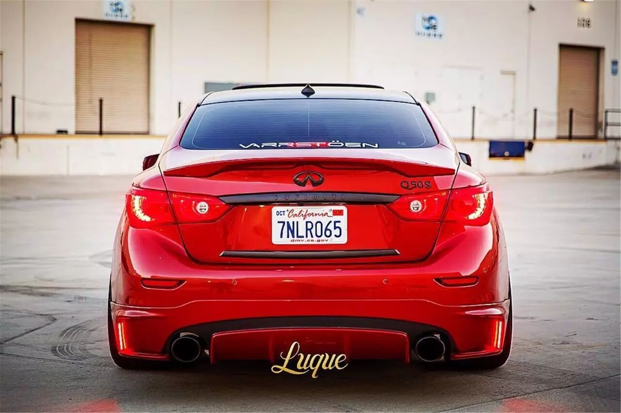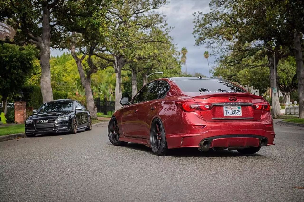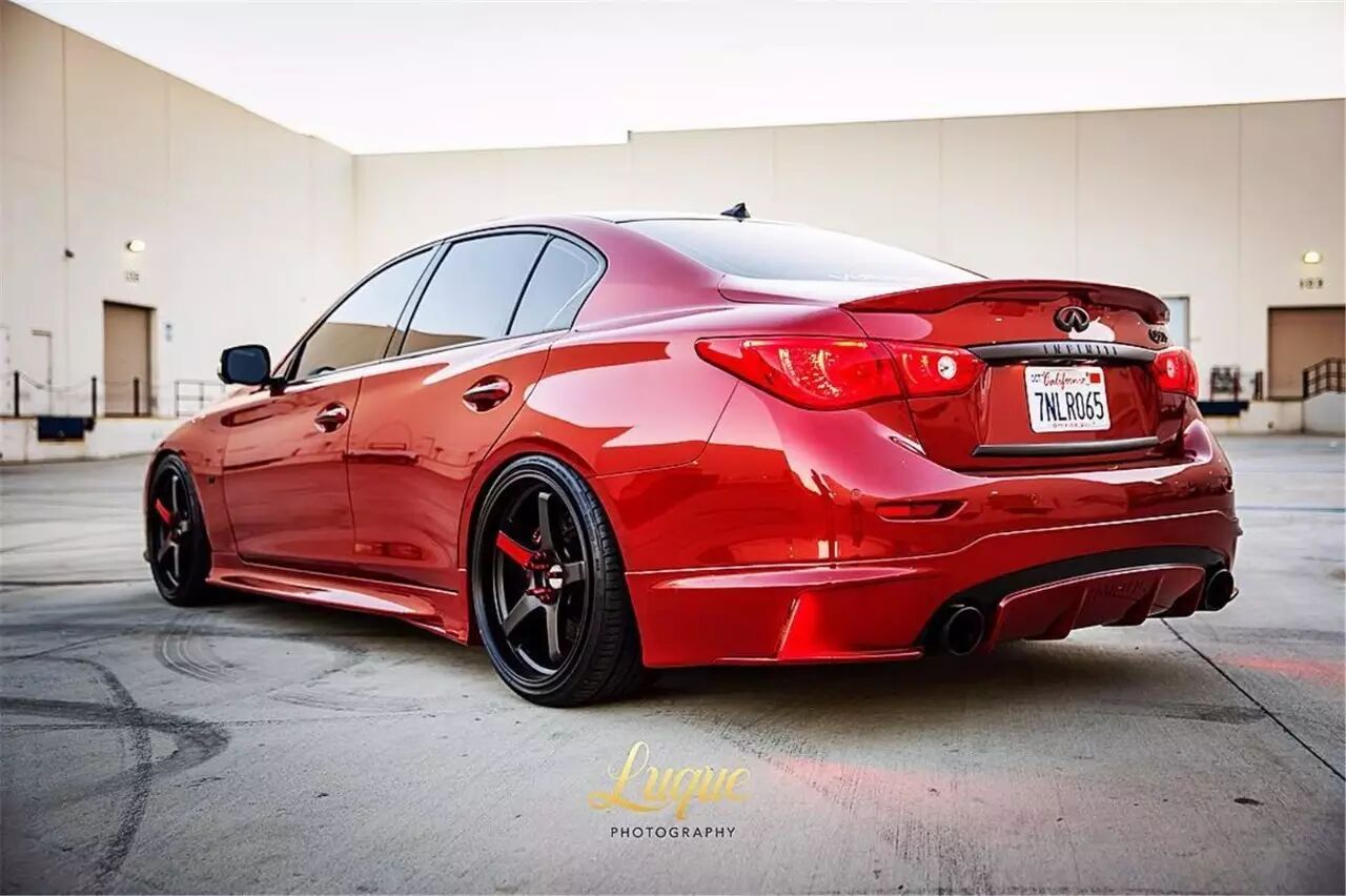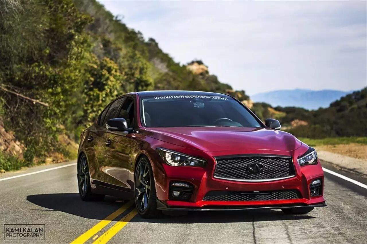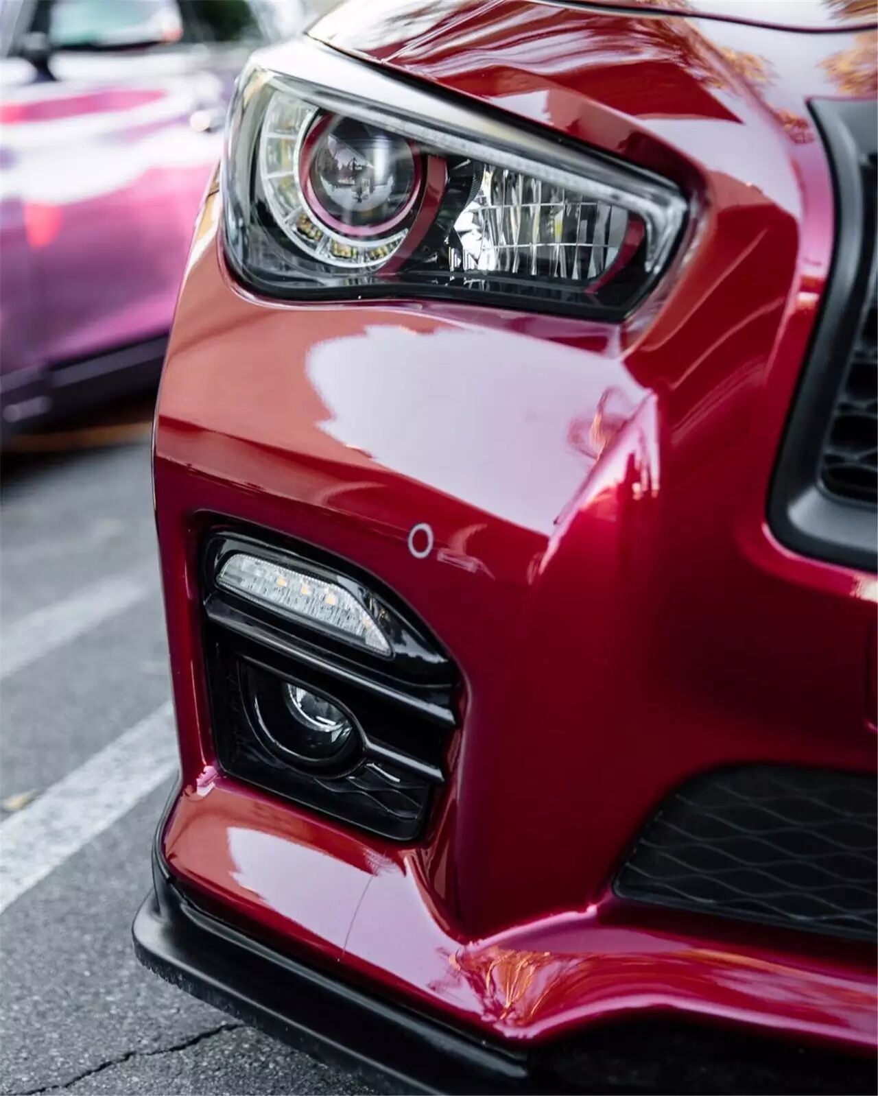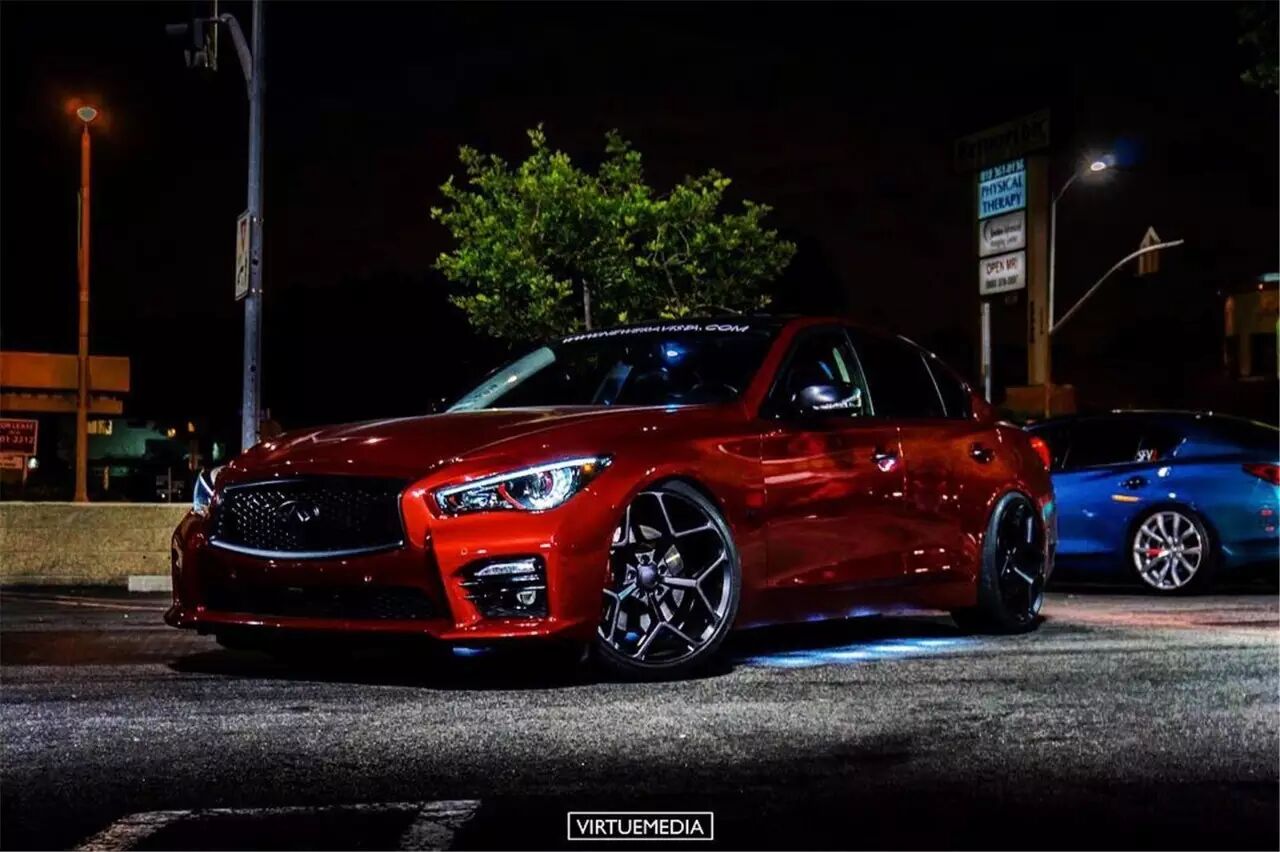 完成后的Q50S, 车身前部有着如同日产GT-R般棱角分明的线条感, 运动款的包围配合简单的色彩搭配也让它的眼睛里充满杀气,明明很低调,但却又那么嚣张.