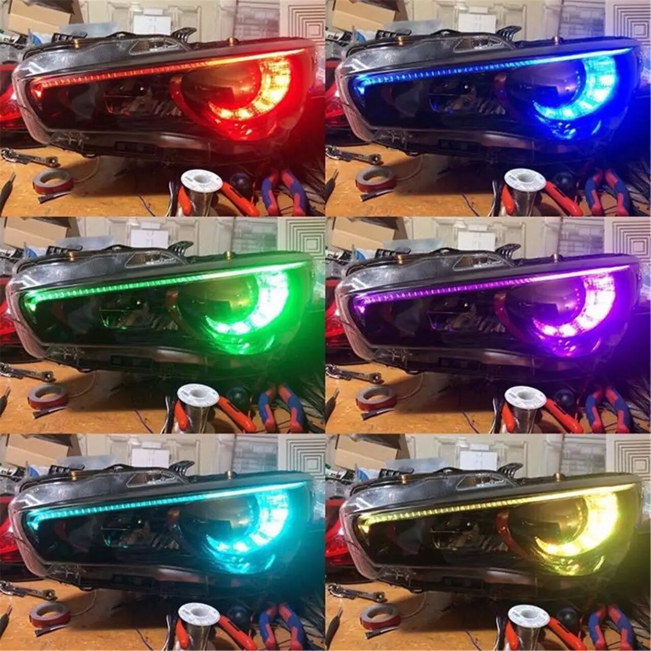 接着, 作为传递”感情”的大灯也被车主加以改造, 升级为手机可调颜色的变色大灯.而刹车部分,继续沿用原厂的四活塞卡钳, 并将其喷为鲜红色,而盘片也升级为打孔划线碟,在冲击视觉之余还能起到更高效的刹车效能.
