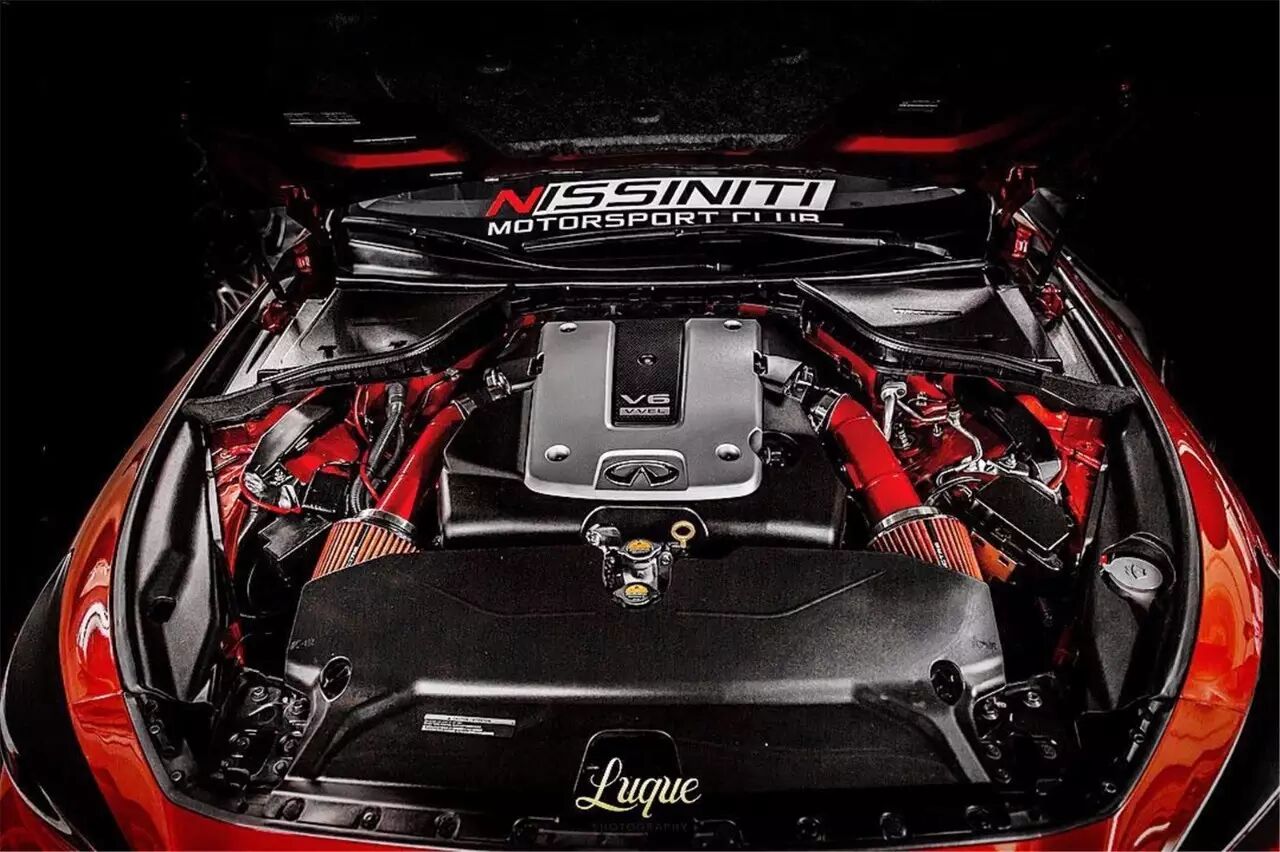 今天的这位小伙来自美国, 它的座驾就是一辆Q50S为了提升过年走亲戚时的逼格, 特意改装爱车, 使其无论从质感还是性能上都有不错的进化.首先车主更换了一套进排气系统,让VQ37HR发动机的呼吸更顺畅!