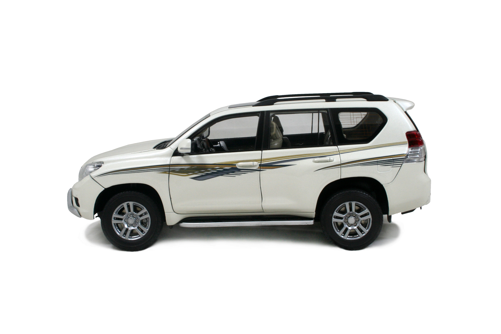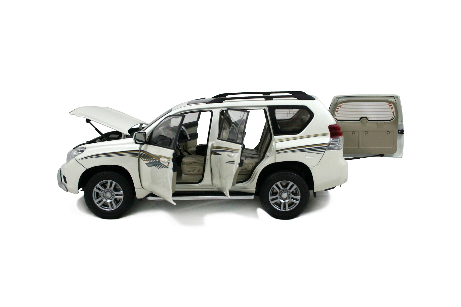 The product according to the Toyota company Land Cruiser Prado models to replicate and shrink production, the model car proportion to 1:18 scale, is the Toyota scale model cars series of a refined diecast model cars. The model car adopts zinc alloy material, Paint surface using three-layer electrostatic spray painting, model car parts as many as hundreds. With collection value, is the best choice for collectibles and gifts. Open the door the whole model, 4 wheel suspension, steering wheel to control the front wheel steering, gasoline tank cover is open, open the trunk storage layer.