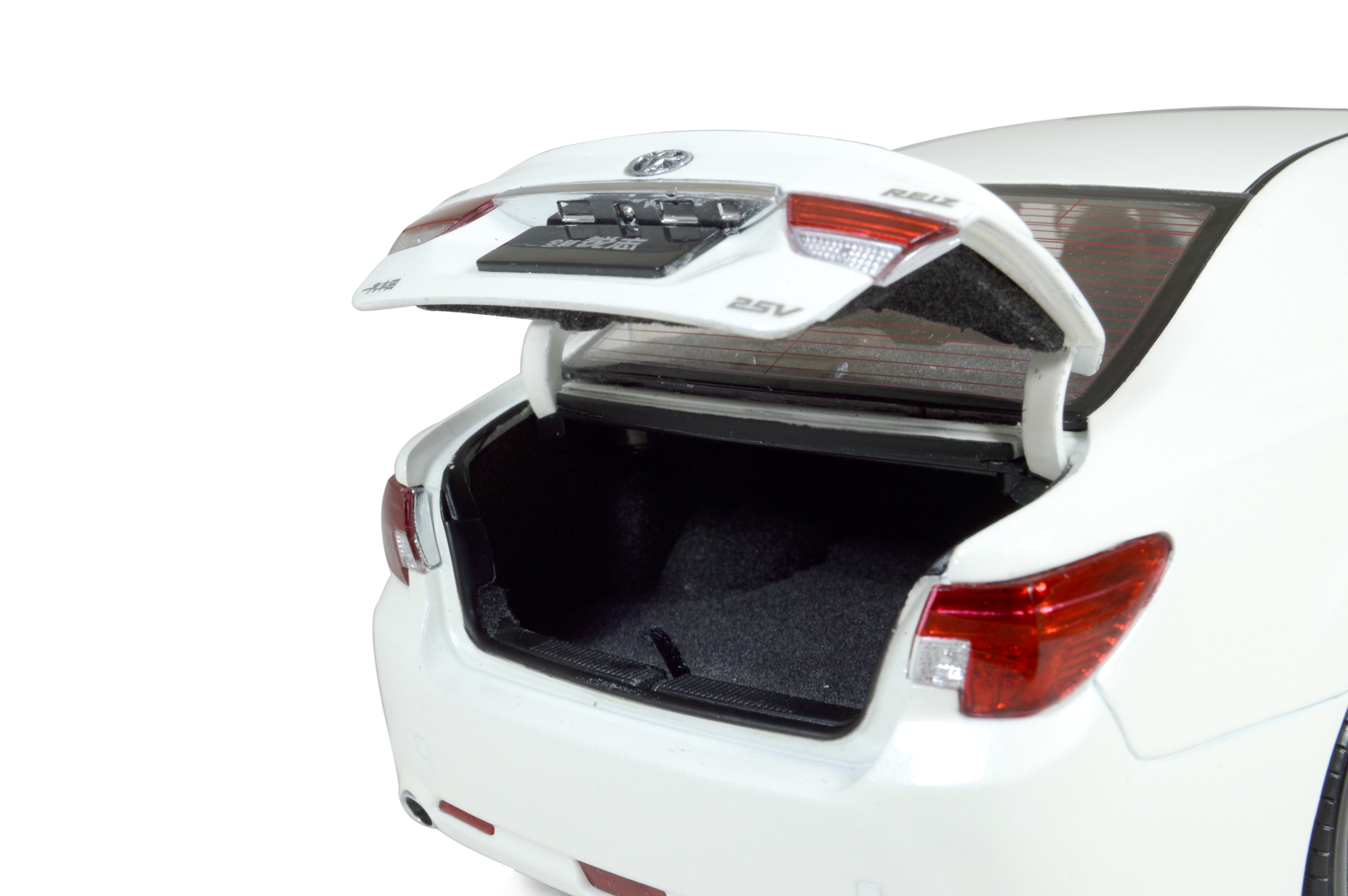 The product according to the Toyota company Reiz 2014 models to replicate and shrink production, the model car proportion to 1:18 scale, is the Toyota scale model cars series of a refined diecast model cars. The model car adopts zinc alloy material, Paint surface using three-layer electrostatic spray painting, model car parts as many as hundreds. With collection value, is the best choice for collectibles and gifts. Body for the alloy material, before and after the wheel suspension, four doors can be opened, engine cover can be opened, can clearly see the component parts of the engine, rear door can be opened, the trunk floor can be open ; the body interior simulation carpet.