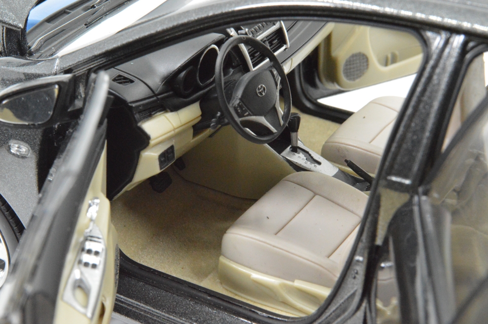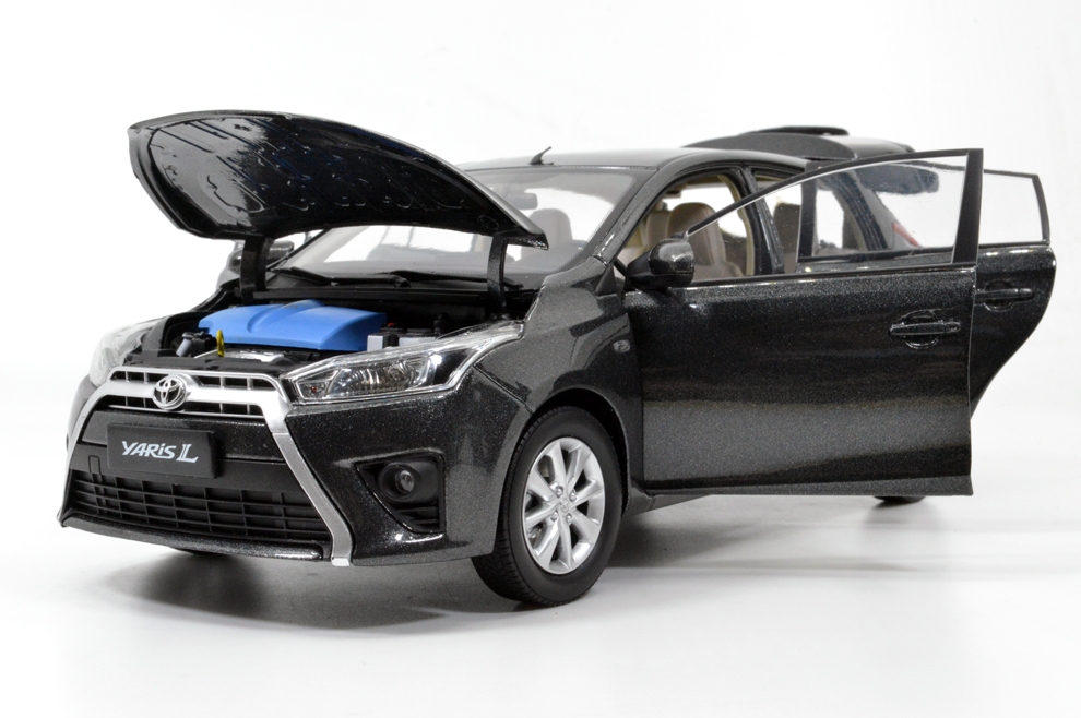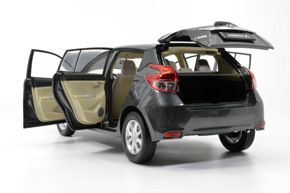 The product according to the Toyota company Yaris models to replicate and shrink production, the model car proportion to 1:18 scale, is the Toyota scale model cars series of a refined diecast model cars. The model car adopts zinc alloy material, Paint surface using three-layer electrostatic spray painting, model car parts as many as hundreds. With collection value, is the best choice for collectibles and gifts. Body for the alloy material, before and after the wheel suspension, four doors can be opened, engine cover can be opened, can clearly see the component parts of the engine, rear door can be opened plate can be activities, the trunk floor can be open ; the body interior simulation carpet, at the top of the roof inner plate can slide back and forth, front seat can slide back and forth, instrument panel screen made of three-dimensional shape pattern, steering wheel control the rotation of the front wheel, electroplating height simulation tyre, all metal chassis.