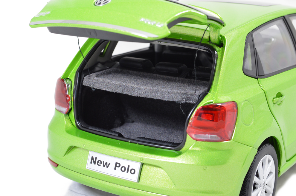 The product according to the Volkswagen company Polo 2014 models to replicate and shrink production, the model car proportion to 1:18 scale, is the Volkswagen scale model cars series of a refined diecast model cars. The model car adopts zinc alloy material, Paint surface using three-layer electrostatic spray painting, model car parts as many as hundreds. With collection value, is the best choice for collectibles and gifts. Model of alloy material, the left and right sides of the door open, the hood open, open the trunk, flocking interior.