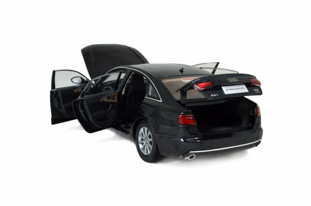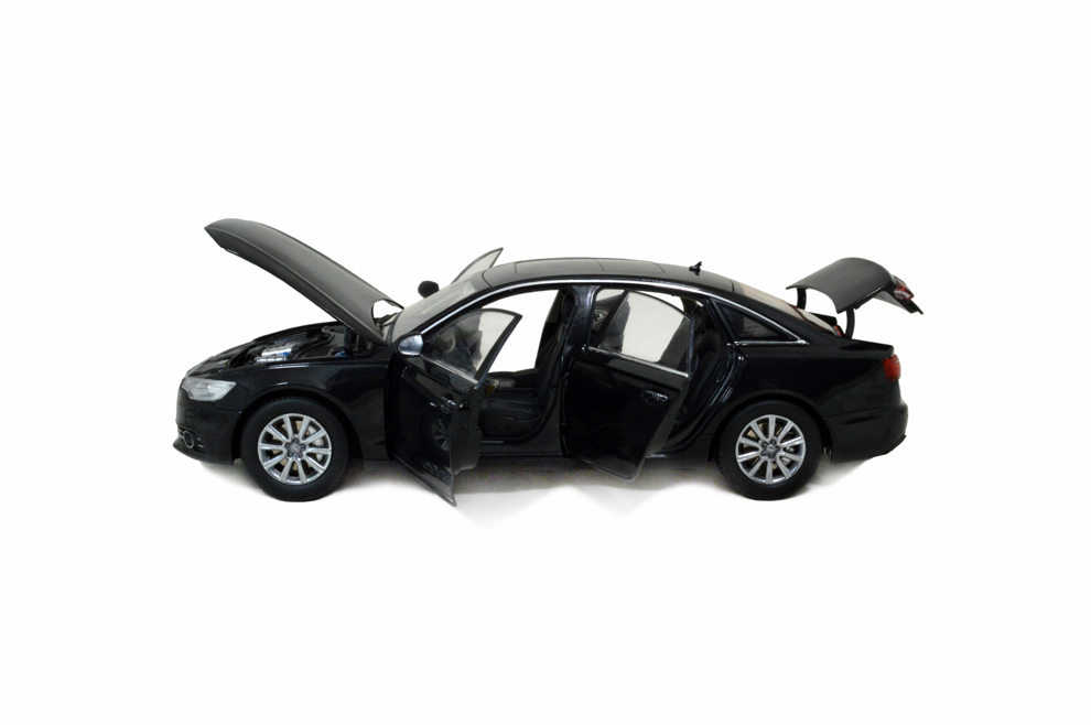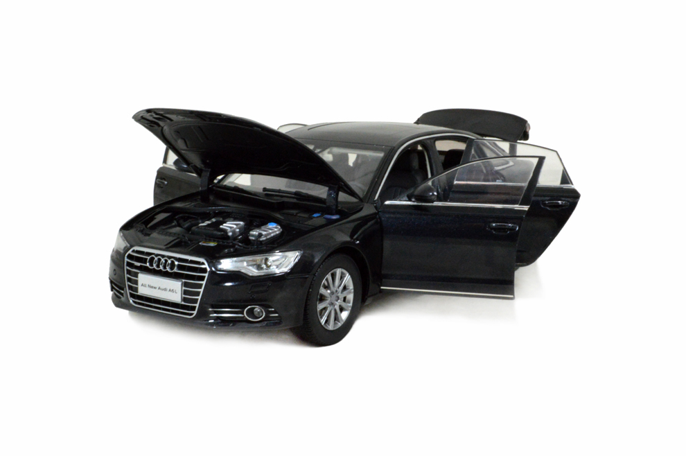 本产品根据奥迪公司2012款A6L车型进行复制缩小制作,模型车比例为1:18,是奥迪比例模型车系列中的一款精致的合金模型车。模型车采用锌合金材质,漆面采用三层静电喷漆,模型车零件多达数百个。极具收藏价值,是收藏品和馈赠佳品。车身为合金材质,前后轮悬挂,四门可打开,发动机盖可打开,可清晰看到发动机各部件总成,行李箱可打开;车身内饰采用仿真地毯,仪表盘屏幕制成立体造型图案,油箱可打开,高仿真电镀铝轮毂。