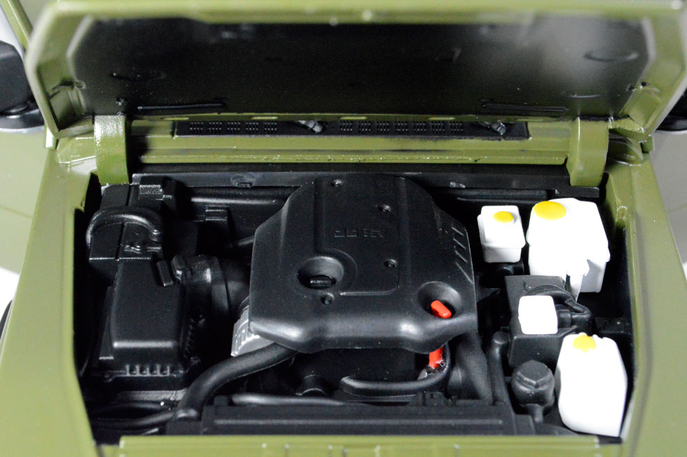 5.fuード/ボンネットを开き、非常に详细なエンジンコンパートメントを表示します。