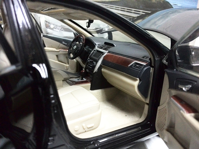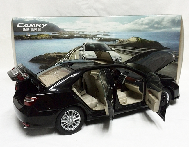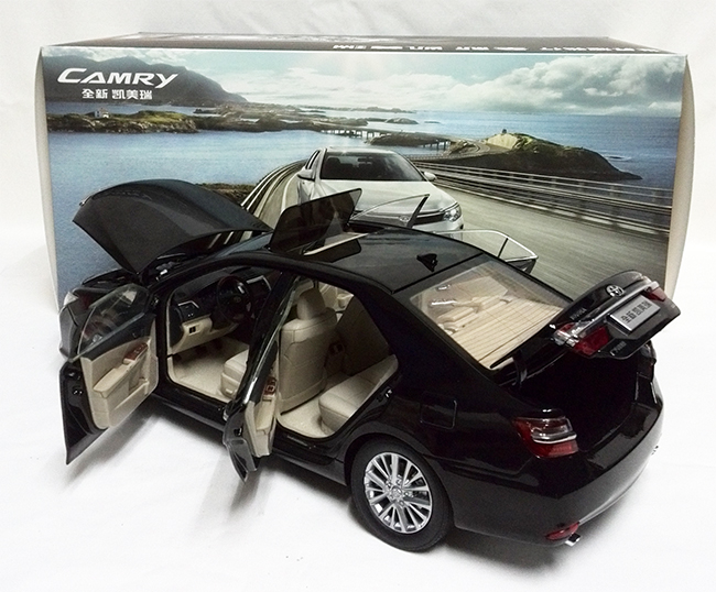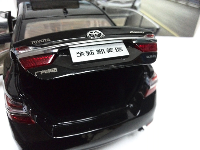 本产品根据丰田公司凯美瑞2011款车型进行复制和缩小制作,模型车比例为1:18比例,是丰田比例模型车系列中的一款精致的合金模型车。模型车采用锌合金材质,漆面采用三层静电喷漆,模型车零件多达数百个。具有收藏价值,是收藏品和馈赠佳品。车身为合金材质,前后轮悬挂,四个车门可打开,发动机盖可打开,可清晰看到发动机各部件,后车门可打开,车门板可活动,后备箱地板可打开;车身内部有仿真地毯,电镀高仿真轮胎。